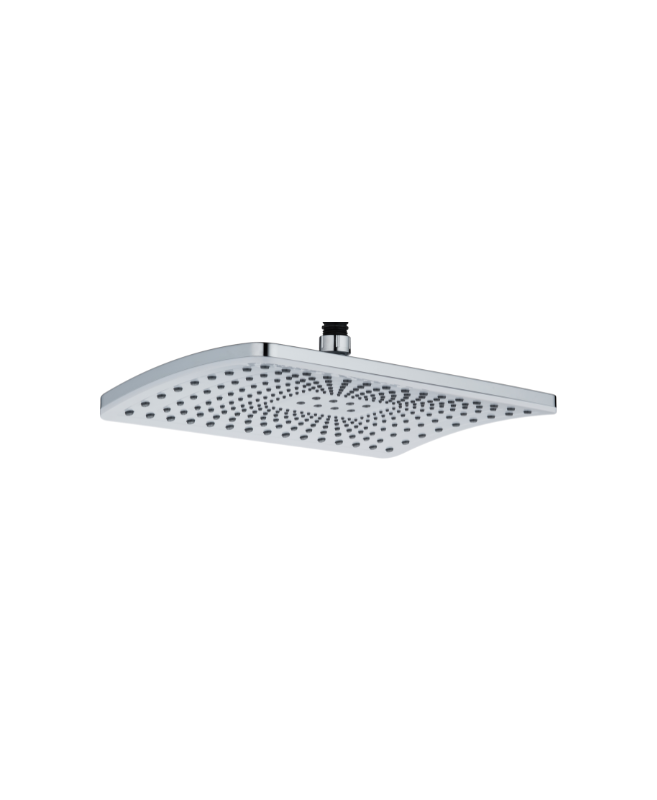 Elegant 12″ x 8″ chrome fiinished rain shower offering wide, even water coverage and a sleek design for a luxurious bathing experience.