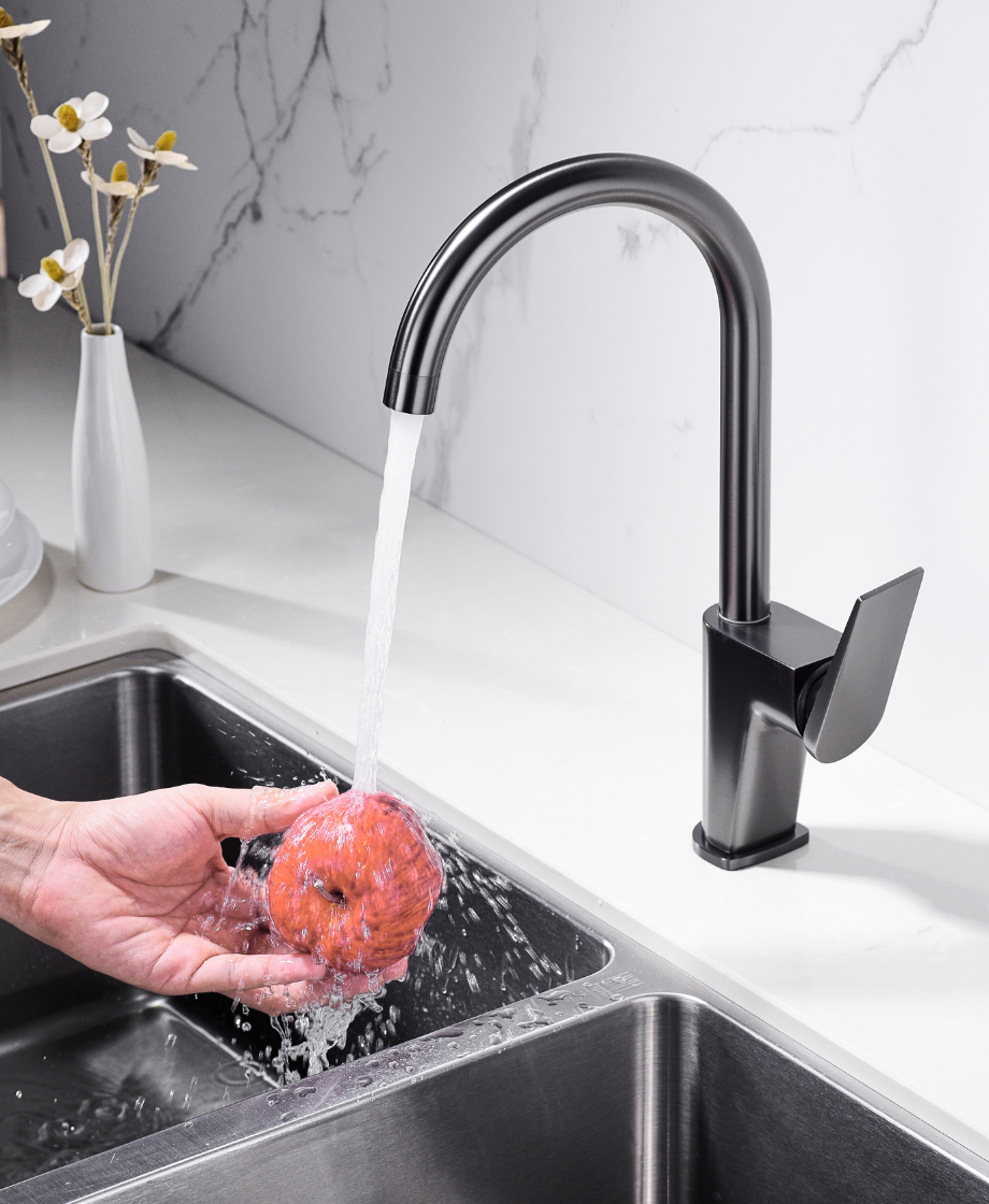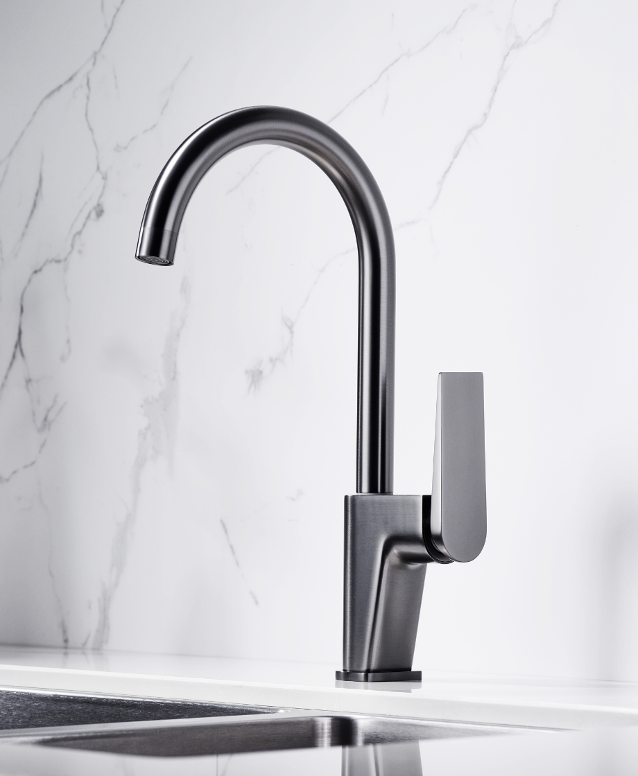Artrie’s KM-01 Series faucet combines elegance with functionality, standing tall at 370mm. Available in Gun Metal, Rose Gold, Gold, Matt Black, and Chrome, it enhances modern kitchens with premium design, durability, and a sleek finish.